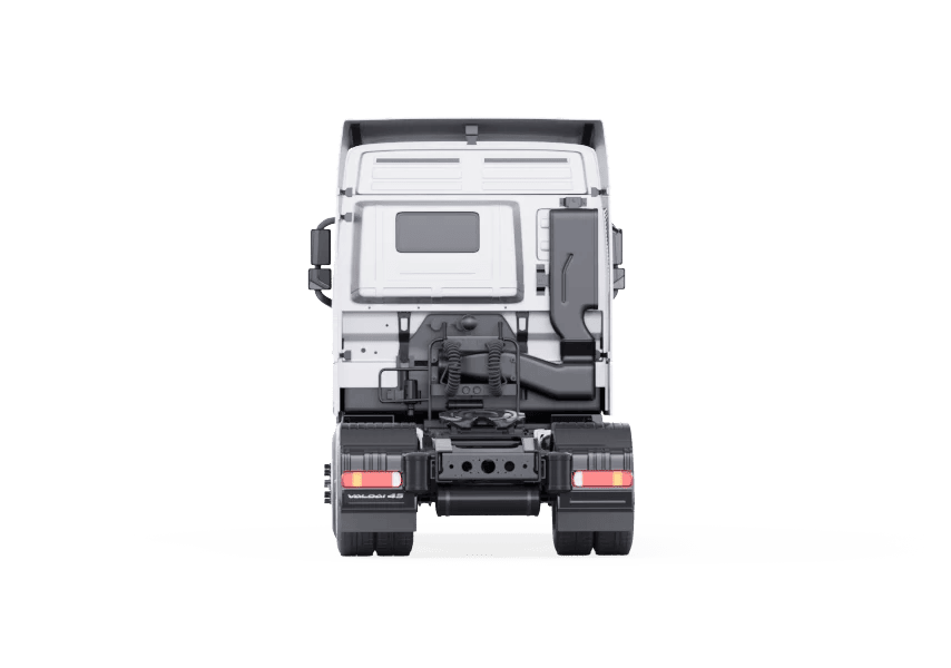 Задний мост от Qingte Group (официальный поставщик Daimler) — одноступенчатый, гипоидный, с главной парой 2.846 и вертикальной нагрузкой 13 тонн. Использование дисковых тормозов и продуманной аэродинамики (спойлеры, боковые обтекатели, плотное сопряжение с полуприцепом) помогает снизить топливный расход и улучшить устойчивость на дороге.